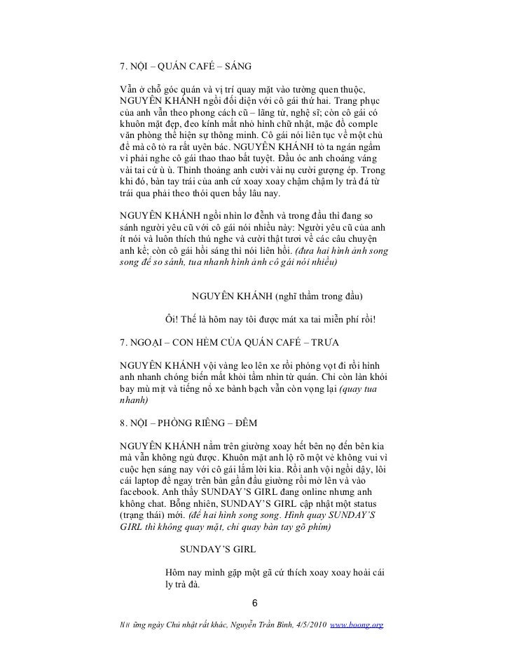 Kịch Bản Phim Ngắn Những Ngay Chủ Nhật Thật Khac Nguyễn Trần Binh